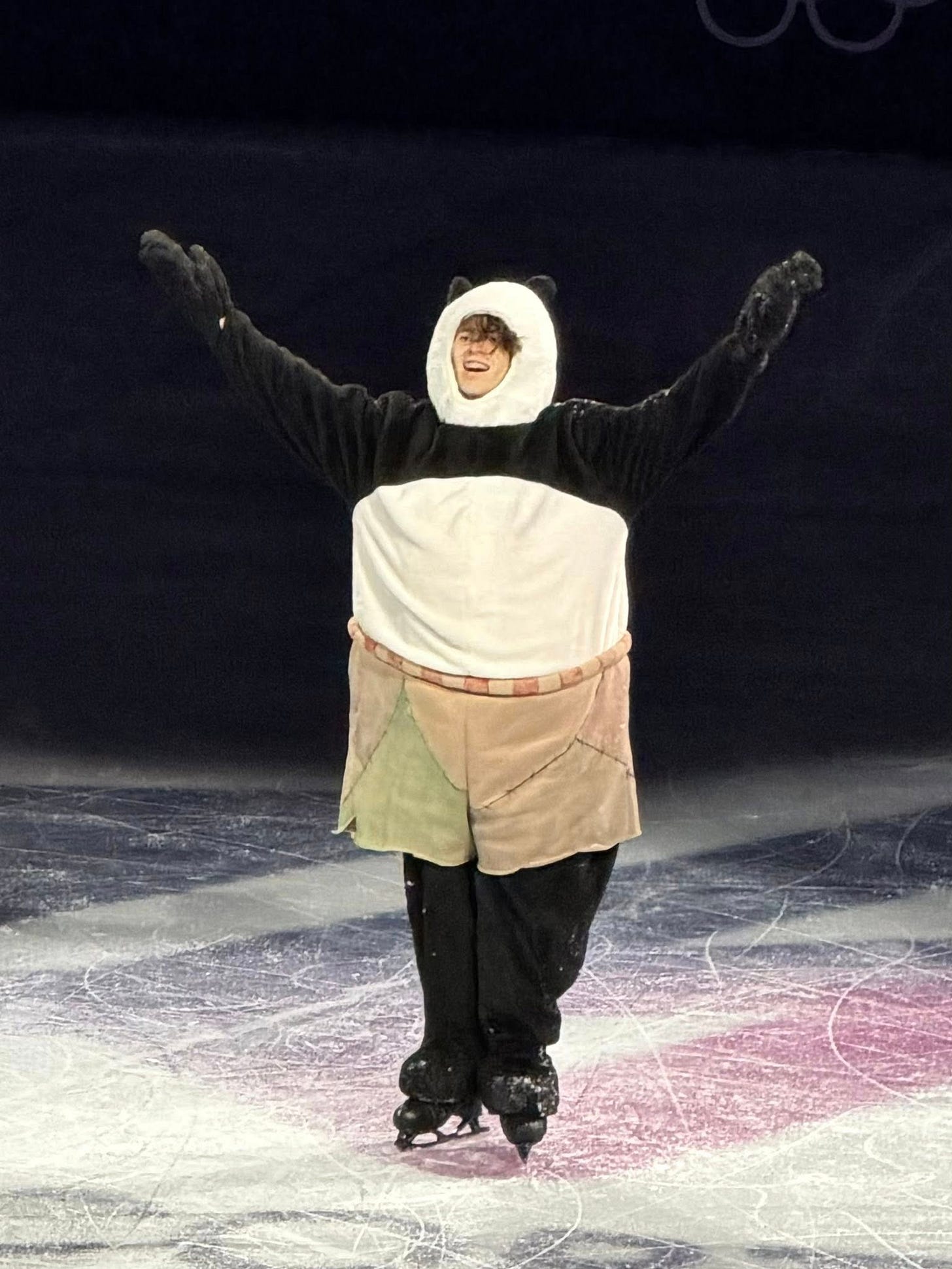 My personal favorite was Mikhail Shaidorov, the Kazakhstani gold medalist who performed dressed as “Kung Fu Panda” while skating to the song “Kung Fu Fighting” by Carl Douglas. Shaidorov skated amazingly well while encumbered by this huge, clunky costume. It was pure fun.